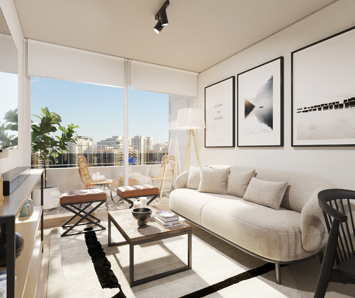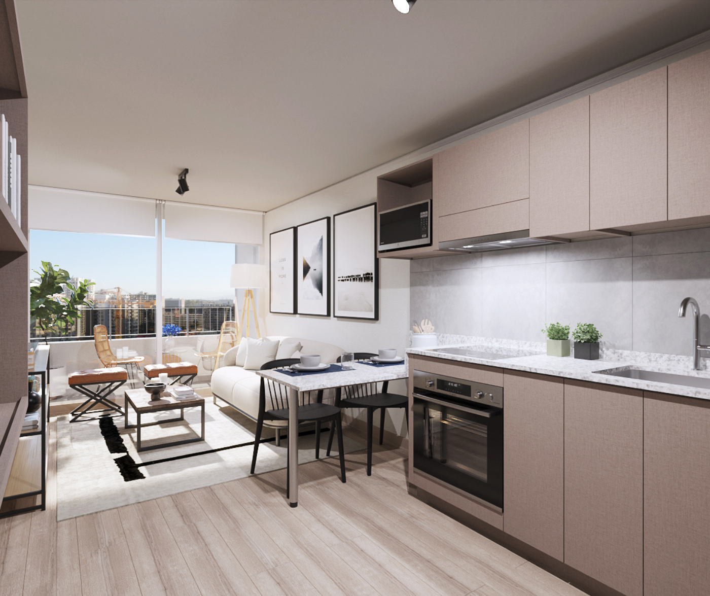 Las imágenes, textos y contenidos en este sitio fueron elaborados con fines ilustrativos y no constituyen necesariamente una representación exacta de la realidad. Su objetivo es mostrar una caracterización general del proyecto y no cada uno de sus detalles. Verifique las especificaciones de su departamento al momento de comprar. Esto se informa en virtud de lo señalado en la Ley N°19.496 y según la Ley N°21.014.